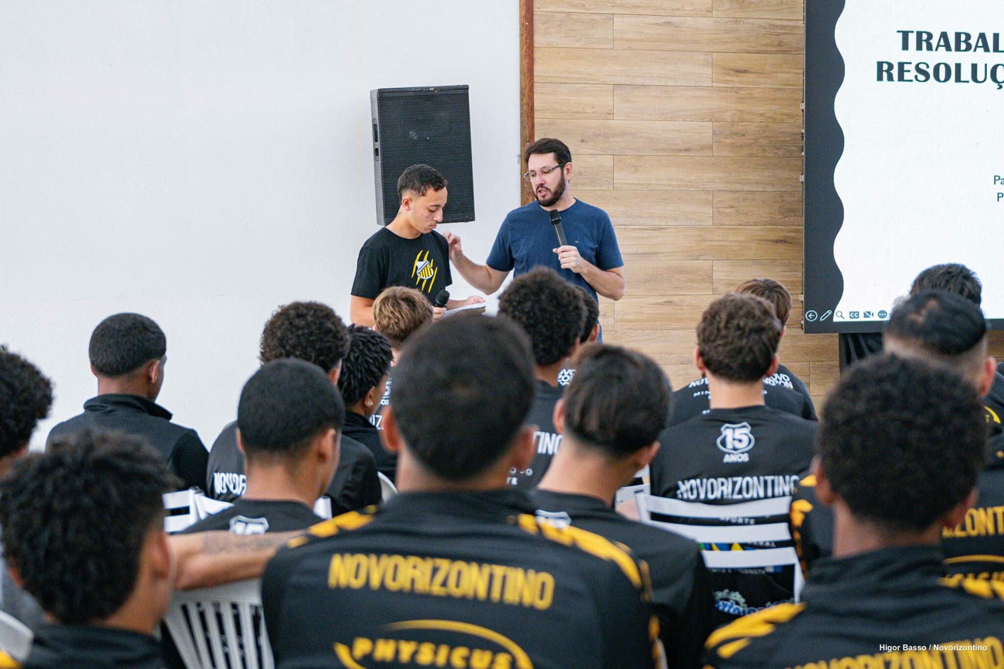 O Grêmio Novorizontino SAF promoveu neste mês de setembro mais uma palestra importante no processo de formação de seus atletas das categorias de base. Paulo Henrique de Oliveira, psicólogo clínico e do esporte, abordou o tema “Trabalho em Equipe: Comunicação eficaz e resolução de conflitos”, com o objetivo de capacitar os jovens atletas a se comunicarem de forma clara, assertiva e respeitosa, fomentando valores de cooperação, respeito mútuo e da busca por soluções pacíficas e construtivas no ambiente esportivo.