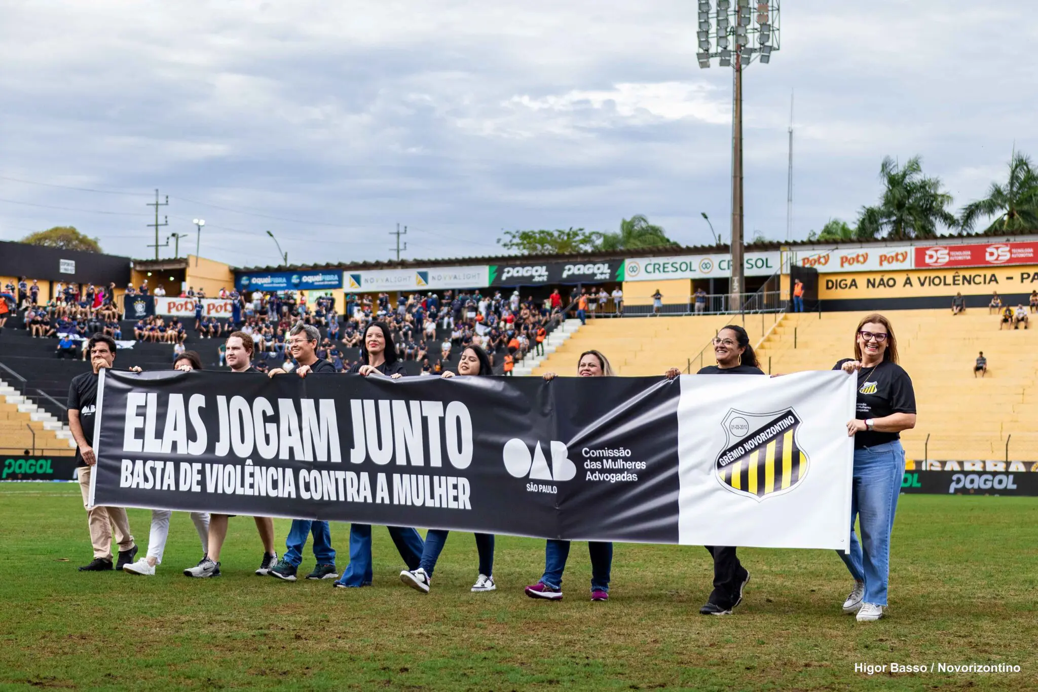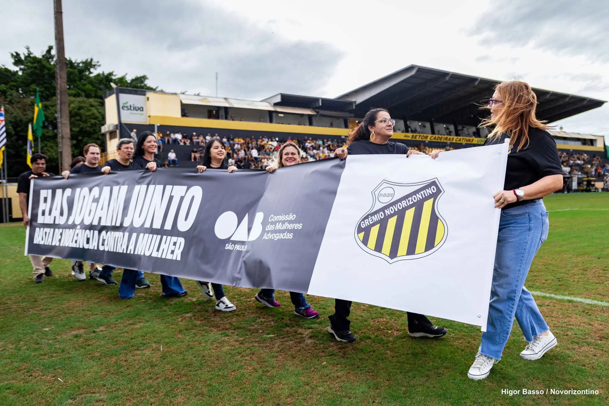 O Grêmio Novorizontino foi o primeiro clube do Interior de São Paulo a engajar na campanha nacional “Elas Jogam Junto”, promovida pela OAB SP (Ordem dos Advogados do Brasil Seção São Paulo) por meio da Comissão das Mulheres Advogadas. No último sábado, 8 de novembro, durante a partida entre Novorizontino e Remo, no Estádio Doutor Jorge Ismael de Biasi, em Novo Horizonte, ações marcaram a campanha, que tem como objetivo conscientizar e combater todas as formas de violência contra as mulheres.