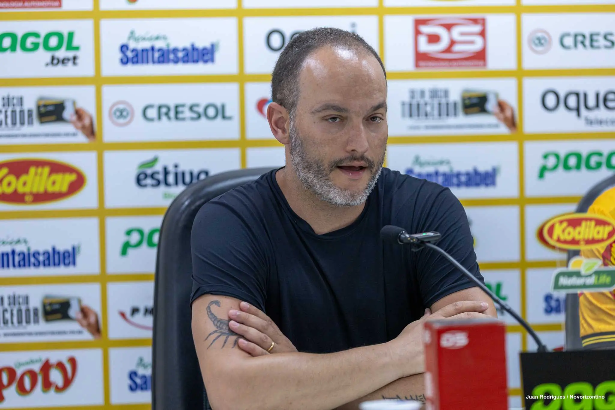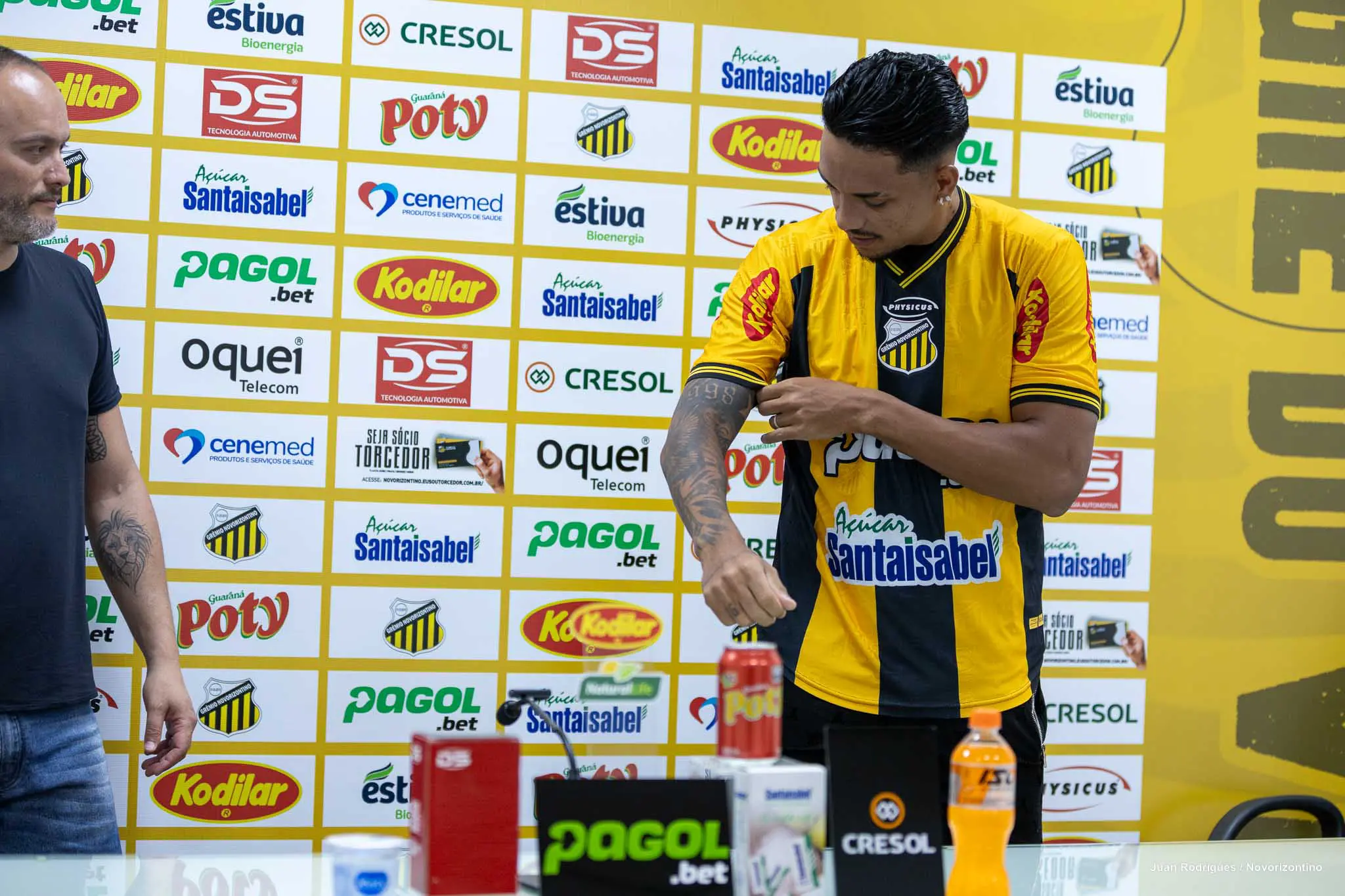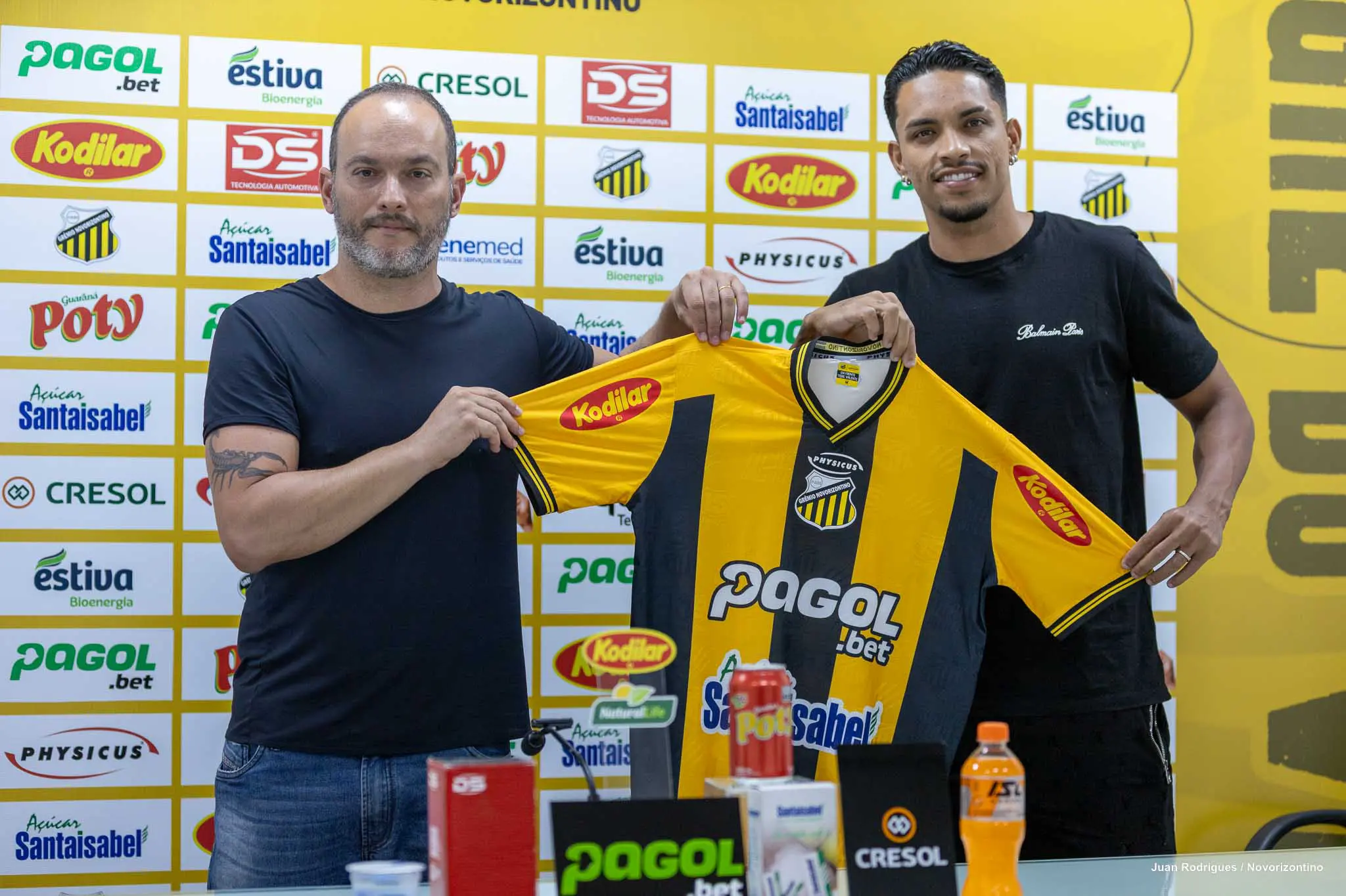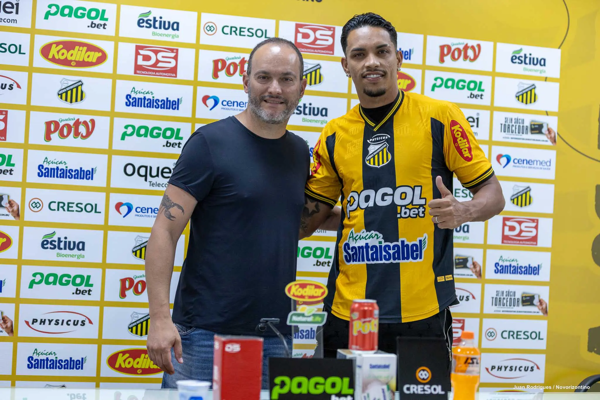 “Seja bem-vindo ao Novorizontino, que você tenha um ano de muito sucesso vestindo a camisa do Tigre. Continuando essa reformulação, que a gente já comentou, uma reformulação grande relacionada ao ano de 2025 para o ano de 2026, alguns jogadores já foram anunciados, outros ainda estão por vir, o Gabriel vem pra reforçar a zaga, um jogador com bastante imposição física, qualidade de jogo também, vai agregar muito a esse setor defensivo”, afirmou Edgard Montemor.