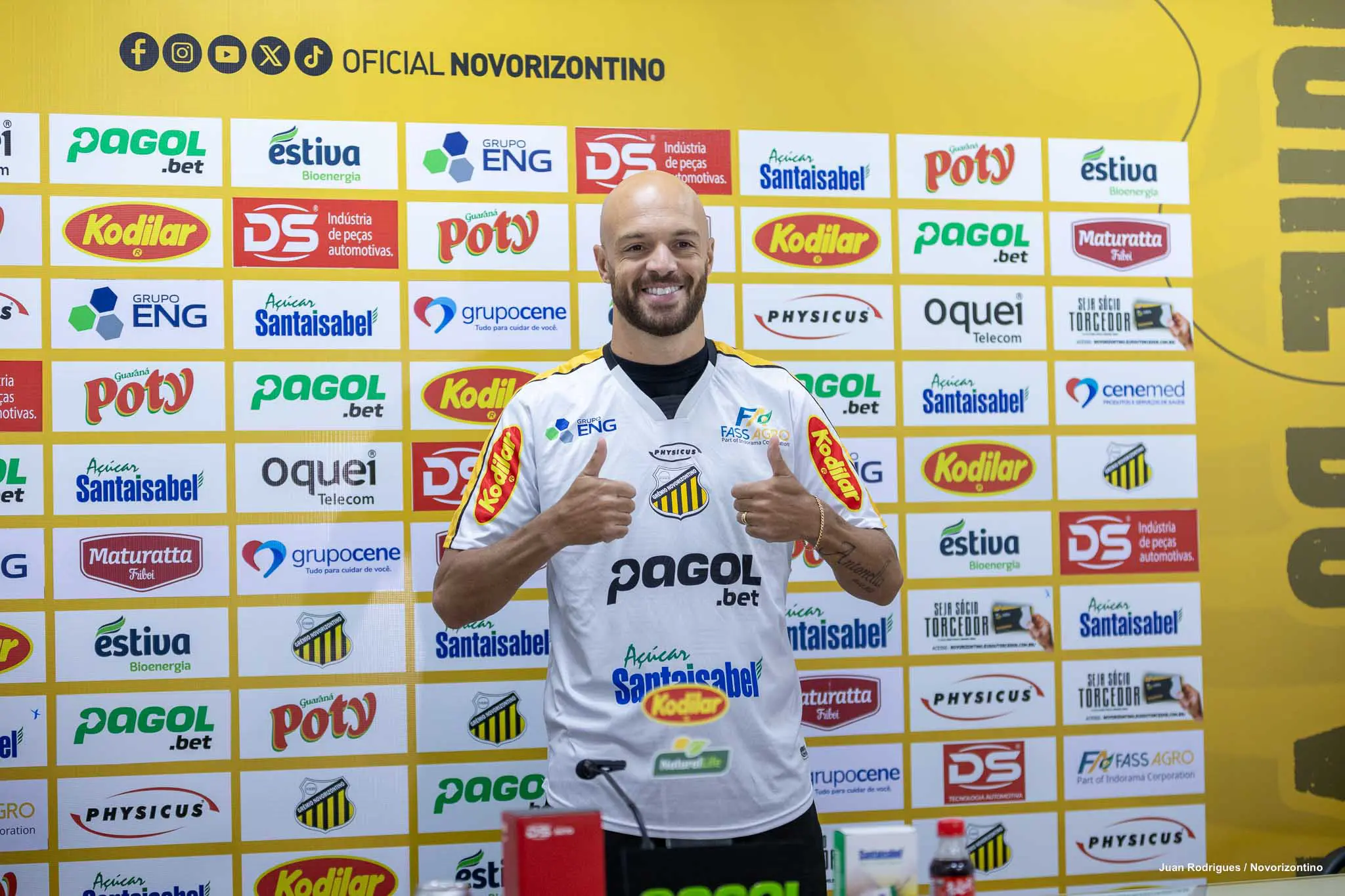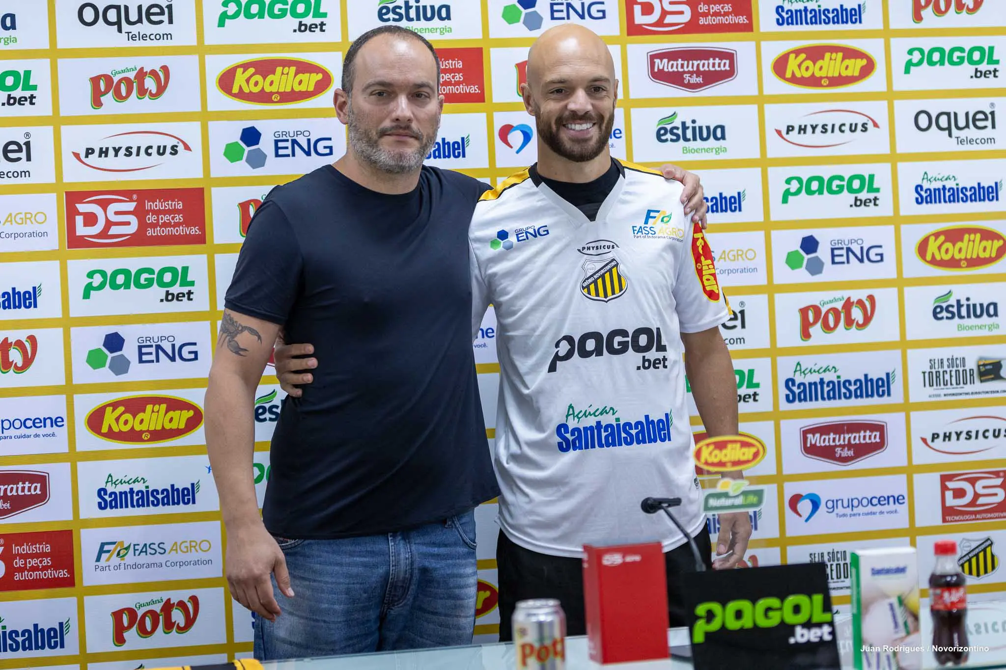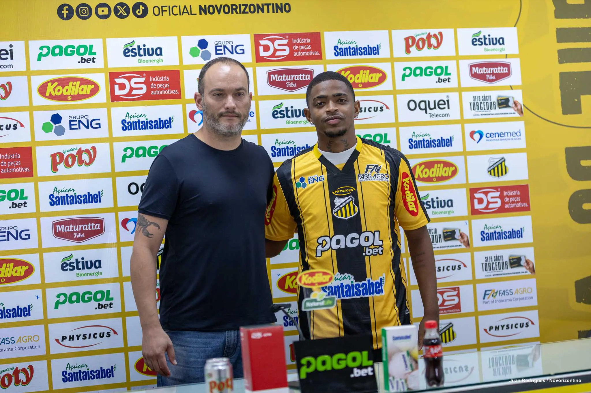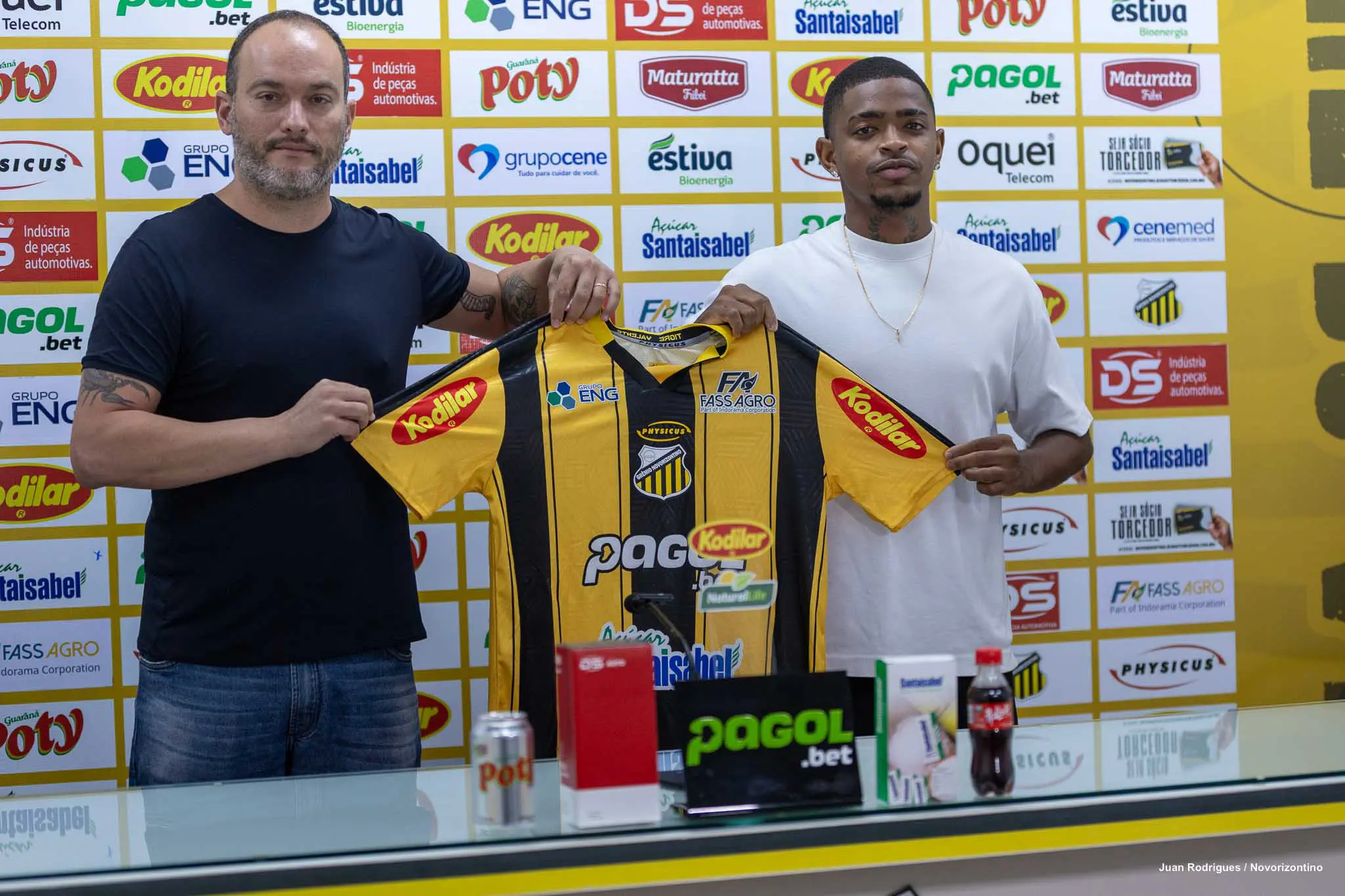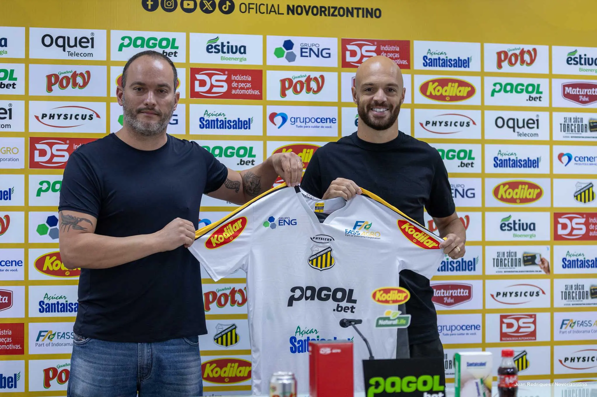 O Grêmio Novorizontino apresentou de forma oficial na tarde desta sexta-feira (20) os atacantes Carlão e Ronald Barcellos, como reforços do elenco para sequência da temporada 2026. Ambos já entraram em campo com a camisa do Aurinegro nos dois últimos jogos da Copa do Brasil, e estão à disposição do técnico Enderson Moreira para estreia no Brasileirão B, domingo, às 20 horas, contra o Londrina, no Estádio Jorge Ismael de Biasi, em Novorizonte.